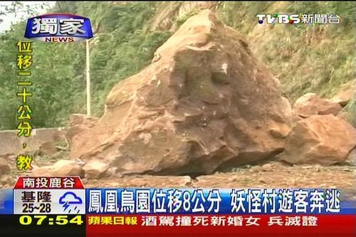 往鹿谷里面走,投56線也出現(xiàn)坍方,巨石滾下來,在路面上砸出1條長長的裂痕,田底村13戶住戶,還有30多名采茶工人,還受困在村內(nèi),等待救援;觀光景點(diǎn)鳳凰谷鳥園,也因?yàn)榈嘏7恚a(chǎn)生位移、樓梯下陷,地面高低落差將近8公分,園方也宣布暫時(shí)封園