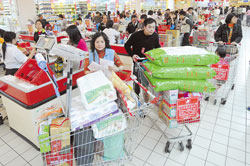 量販業(yè)者形容昨天是“最像假日的上班日”,尤其是夜間推出九折促銷,吸引不少民眾犧牲睡覺(jué)時(shí)間來(lái)采買,估計(jì)有二成來(lái)客選在凌晨消費(fèi)。家樂(lè)福夜間購(gòu)物滿2000元,再送200元折價(jià)券,各店從凌晨起收銀線即大排長(zhǎng)龍,汐止店甚至需排隊(duì)一個(gè)小時(shí)才能順利結(jié)帳。