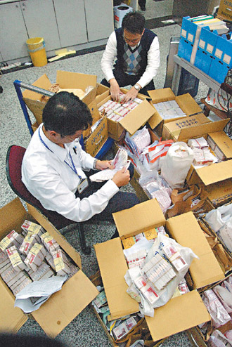 為了紓解兌領(lǐng)人龍,主辦兌領(lǐng)業(yè)務(wù)的臺(tái)銀特別找來(lái)近五百名臨時(shí)人員幫忙兌領(lǐng)、清點(diǎn)。合庫(kù)因?yàn)槭盏降南M(fèi)券實(shí)在太多,直到昨晚行員還在加班。兆豐銀主管也表示,有分行一天收到上百萬(wàn)張的消費(fèi)券,光是一張張核對(duì)背面的數(shù)據(jù)填寫是否完整,就不知道要耗費(fèi)多少時(shí)間。