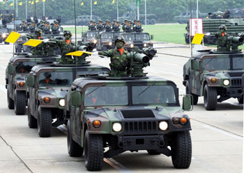 臺(tái)軍方19日在新竹湖口營(yíng)區(qū)實(shí)施“雙十”操演預(yù)演。地面部隊(duì)進(jìn)行行軍及裝備陳展等科目,圖為臺(tái)陸軍反裝甲拖式導(dǎo)彈車,它是臺(tái)軍現(xiàn)役重要的反裝甲武器 。 來(lái)源:“中央社”