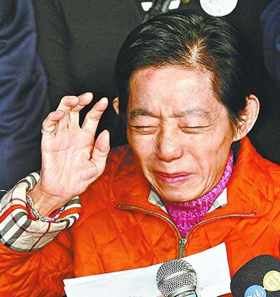 2月10日,臺(tái)北地方法院再次傳喚陳水扁之妻吳淑珍到庭應(yīng)訊,繼續(xù)審理前臺(tái)灣地區(qū)領(lǐng)導(dǎo)人陳水扁家所涉弊案。吳淑珍在連續(xù)17次拒不出庭后,當(dāng)日終于現(xiàn)身,并在兩個(gè)半小時(shí)的庭訊結(jié)束后,發(fā)表簡(jiǎn)短“道歉聲明”,表示今后將“隨傳隨到”。圖為吳淑珍庭訊結(jié)束后離開臺(tái)北市地方法院時(shí),媒體圍追。 中新社發(fā) 路梅 攝