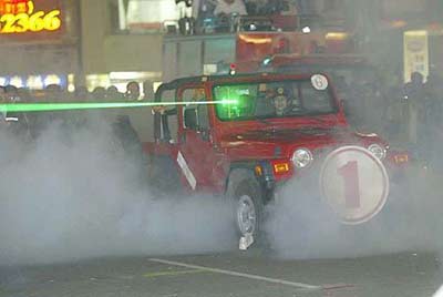 李昌鈺博士赴臺(tái)南市金華路槍擊現(xiàn)場(chǎng),進(jìn)行雷射彈道比對(duì)及兇手開槍位置等現(xiàn)場(chǎng)勘查,過程中以最新雷射儀器測(cè)試彈道射出情形,現(xiàn)場(chǎng)并施放人造煙霧,施放煙霧的主要目的,是為了使光束較容易標(biāo)定。
