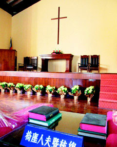 據(jù)《聯(lián)合報》六日報道,日月潭管理處處長曾國基表示,“耶穌堂”位在水社的荷梅園中,管理處近日推出優(yōu)惠結婚方案,新人還可漫步廊道,飽覽日月潭的湖光山色,晚間欣賞水舞表演。而近日正逢櫻花季,走過櫻花隧道到教堂結婚,別具風味。