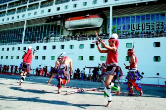 中新網(wǎng)3月17日電 據(jù)臺(tái)灣《聯(lián)合晚報(bào)》報(bào)道,大陸安利營(yíng)銷精英團(tuán)17日上午搭郵輪“海洋神話號(hào)”抵達(dá)花蓮港,花蓮縣在港邊安排原住民舞蹈歡迎,大陸觀光客看得興高采烈。