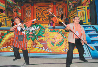臺中市文化局長黃國榮和市議員王秋冬等,吹奏《上海灘》、《高山青》、《那魯灣》、《茉莉花》等歌謠,團(tuán)員們聽到音樂,開心得站起來拍照、跳舞,大聲合唱。