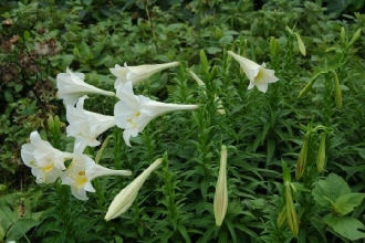 環(huán)島公路白沙到馬蹄橋路段、海參坪到綠島朝日溫泉,以及通往觀音亭的公路旁山壁,都是賞百合地點(diǎn),野百合一簇簇在巖壁上迎風(fēng)搖曳。而在島上步道綠林間,還有玉葉金花、黃槴與華八仙等植物伴隨百合展露花容。