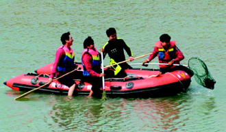 岸上圍觀民眾擔心它會淹死而目睹了一場不一樣的抓猴記。警義消拿出網(wǎng)子朝小獼猴撒網(wǎng),終將它“撈”上橡皮艇,“抓猴劇”半小時落幕。