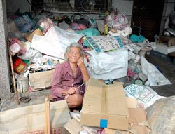 中新網(wǎng)3月19日電 據(jù)臺(tái)灣《中國時(shí)報(bào)》報(bào)道,屏東潮州一位八十歲老婦人,四年前丈夫罹病過世,她搬到小兒子家同住,但怕狗的她卻以屋內(nèi)有狗為由,堅(jiān)持不進(jìn)家門,自己則利用紙箱、尼龍袋就在門前騎樓隔了一個(gè)小空間當(dāng)作棲身處,不管天冷、天熱始終不離開,鄰居路過時(shí)都不禁投以好奇的眼光。
