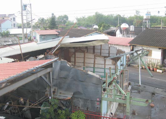 中新網(wǎng)4月21日電 據(jù)臺灣《聯(lián)合報》報道,臺南縣白河鎮(zhèn)大林里20日下午疑出現(xiàn)龍卷風(fēng),瞬間強大風(fēng)力,吹毀九戶民宅屋頂,婦人吳郭幼家的鐵皮屋頂整個被掀開,一百八十度翻轉(zhuǎn)后,再倒蓋在房子上,“全部過程不到一分鐘”,受災(zāi)民眾談起仍難掩驚嚇。
