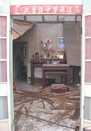 篤信佛教的她說,趕緊回屋,發(fā)現(xiàn)三十坪大的屋內(nèi)滿目瘡痍,電視、冰箱全倒,杯碗散落一地,亂成一團;“還好客廳供奉的佛祖神像沒有受損”,仍安穩(wěn)坐在供桌上。“能逃過一劫,真是神明有保佑!”