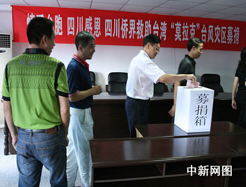 中新網(wǎng)成都8月18日電(王萌 陳典路)“去年四川地震后,臺灣同胞紛紛慷慨解囊,幫助我們度過了最艱難的日子;現(xiàn)在,臺灣同胞遭受臺風(fēng)肆虐,華夏兒女同根同源,我們義不容辭獻出愛心,用大愛撐起抗災(zāi)的力量,用信念幫助受災(zāi)的臺灣同胞。”四川省僑辦主任周敏謙率先將捐款放入捐款箱,拉開了四川僑界“情系臺胞、四川感恩、救助臺灣‘莫拉克’臺風(fēng)災(zāi)區(qū)募捐”儀式的序幕。