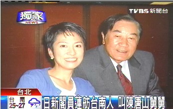 陳唐山眉開(kāi)眼笑秀出和日本新閣員蓮舫的合照,“她(蓮舫)蠻可愛(ài)的,她那個(gè)鼻子就是像她的爸爸,我姐夫就是那個(gè)樣子。”
