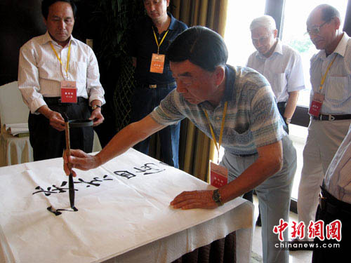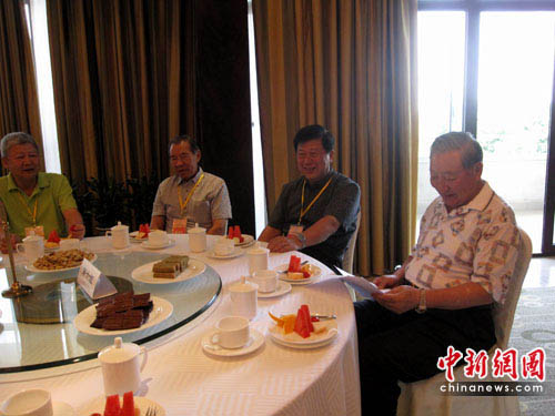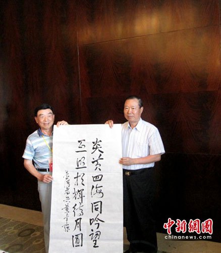 來自臺灣原海軍副總司令官沈方枰中將與大陸的海軍東海艦隊原司令員趙國鈞中將同為一組打球的兄弟,看到記者拍照,沈方枰中將對記者表示“來,給我們兄弟來一張!
