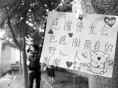 5月5日,采訪團走進四川江油市彰明中學,正對大門的主教學樓正在趕工,但已初具宏偉外觀。校園內的花壇里、樹枝上掛滿五顏六色的千紙鶴、紙百合和卡片,上面寫著學生的感恩和憧憬。一張卡片上寫著:“感謝佛光會,也感謝所有好心人。”
