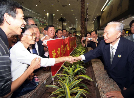 中新網(wǎng)5月22日電 據(jù)“中央社”報(bào)道,前全國(guó)政協(xié)副主席張克輝今天中午搭機(jī)訪臺(tái),這是他從1949年以后第二度回到臺(tái)灣,將參加?jì)屪嫖幕顒?dòng)。對(duì)此,他感到相當(dāng)激動(dòng)。