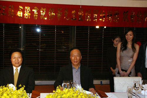 梁保華所帶領(lǐng)的大陸江蘇省經(jīng)貿(mào)考察團(tuán),晚上6時(shí)30分在涵碧樓湖光軒餐廳接受郭臺(tái)銘的晚宴,陪同的臺(tái)灣政商人士包括國(guó)民黨副主席林豐正、全臺(tái)工業(yè)總會(huì)理事長(zhǎng)陳武雄等人,計(jì)有兩岸代表約50人參加。