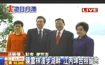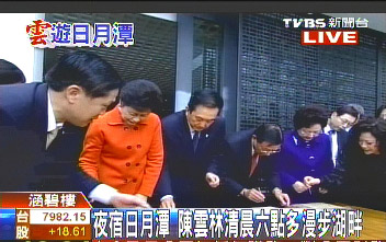 陳云林今天清晨6點(diǎn)多,先是邀約江丙坤共進(jìn)早餐,后來(lái)又漫步在日月潭湖畔,欣賞美麗的風(fēng)光。
