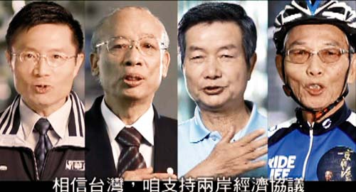 中新網(wǎng)4月14日電 據(jù)臺(tái)灣《聯(lián)合報(bào)》報(bào)道,為了宣傳兩岸經(jīng)濟(jì)合作架構(gòu)協(xié)議(ECFA),臺(tái)“經(jīng)濟(jì)部”請出捷安特自行車創(chuàng)辦人劉金標(biāo)、和友紡織董事長卓欽銘、慶鴻機(jī)電董事長王武雄、福助針織公司(華貴牌絲襪)總經(jīng)理魏平祺等人拍廣告,以“傳產(chǎn)F4”身分擔(dān)任代言人。