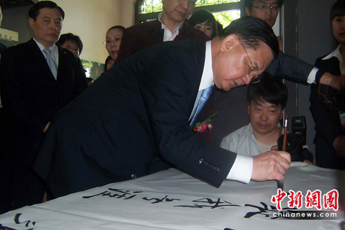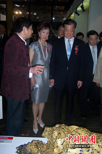 中新網(wǎng)杭州5月2日電(記者 汪恩民)5月2日,“朱炳仁、楊奉琛兩岸兩人藝術(shù)展”在杭州西湖博覽會博物館開幕,中國國民黨榮譽主席連戰(zhàn)出席了開幕儀式并親筆題詞道賀。