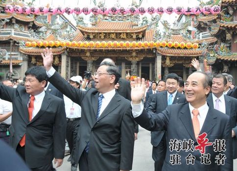 6日,福建省經(jīng)貿(mào)文化交流團(tuán)臺灣之行第二天。交流團(tuán)的重頭戲,一是與合作伙伴做生意,加強(qiáng)兩岸經(jīng)貿(mào)合作,二是到臺中縣大甲鎮(zhèn)瀾宮拜謁媽祖、上香祈福。