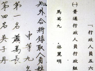 此次展出不僅有馬英九等人的榜單,還有1933年的超級古老榜單。這些榜單已有數(shù)十年歷史,在那個電腦不普及、甚至沒有電腦的年代,都是手寫,頗具古意。