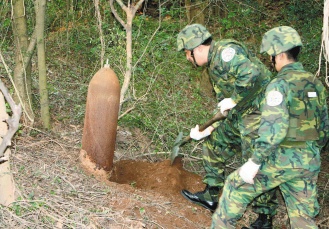中新網(wǎng)3月30日電 據(jù)臺(tái)灣《聯(lián)合報(bào)》報(bào)道,金門戰(zhàn)地充滿歷史,離島小金門29日發(fā)現(xiàn)一枚巨型未爆彈,重達(dá)130公斤,彈長(zhǎng)150公分,未爆彈處理小組勘察,分析可能是二次大戰(zhàn)時(shí)期的美制的300磅空用飛機(jī)炸彈,屬于50年前的老舊炸彈。