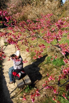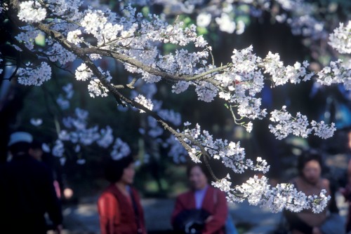 久聞阿里山是全臺灣櫻花最美的地方,光是從日本傳來的染井吉野櫻就多達1900多株,像是阿里山派出所、阿里山賓館、沼平車站及沿線、貴賓館、木蘭園、林務(wù)局招待館、三代木等處,都可以欣賞染井吉野櫻花海如雪的蹤影,三月中開始綻放、三月底進入盛開期的染井吉野櫻,可說是阿里山櫻花季最美麗的主角。高山地區(qū)濕冷多霧,使花瓣呈淡雪色、花心粉紅的染井吉野櫻看起來像是一層層暈染在山頭的雪白云海,當山間微風掠過,迎面撲來如雪花般輕柔的櫻花雨,弱不禁風的姿態(tài)讓人覺得凄美的悵然。但若是天氣晴朗的午后,黃昏前夕陽的光暈照射在櫻花上,平?雌饋泶嗳跄郯椎幕ò赆莘鹞×岁柟饩A,變成極為嬌艷的粉紅色,完全是截然不同兩種花顏,令人驚詫。