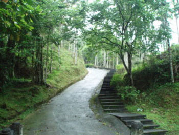 一路上爬,到達(dá)遠(yuǎn)高處,山路又盤(pán)而向下,然后再上盤(pán)往另一高崗。抵達(dá)另一高處時(shí),路旁設(shè)有一座雨量測(cè)量站,這里也是車(chē)道的終點(diǎn),前方不遠(yuǎn)處有一涼亭。由水柳腳形象商圈的牌樓至涼亭,約1.2公里,路程約25分鐘。