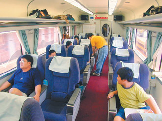 據(jù)了解,這趟行程源起于“監(jiān)委”慕南回郵輪列車之名,由“監(jiān)院”排定日期,但郵輪列車是不定期推出,加上臺鐵不敢怠慢,才派出最高級的商務(wù)彩繪列車。商務(wù)車基本配備為三節(jié)客車車廂,加上一節(jié)有卡拉OK設(shè)備及一節(jié)可提供餐飲服務(wù)的客廳車?蛶侨乓、一節(jié)有三十三個座位,另兩節(jié)車廂可提供二十七個位置,全車共一百二十六個座位。