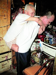 中新網(wǎng)6月15日電 據(jù)臺(tái)灣《聯(lián)合報(bào)》報(bào)道,苗栗市一對(duì)身體殘缺的父子相依為命,互為對(duì)方手腳;他們一個(gè)沒(méi)有雙手、一個(gè)沒(méi)有雙腳。
