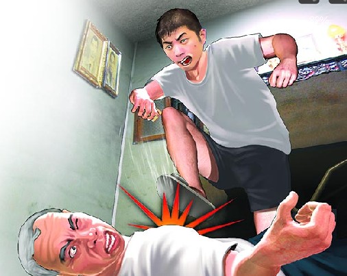 警方表示,沈弘隆與父親沈古源同住在新?tīng)I(yíng)富源街老家。昨天凌晨1時(shí)許,沈弘隆酒后返回住處,看見(jiàn)坐在客廳看電視的父親,隨即開(kāi)口要借3萬(wàn)元,聲稱用來(lái)還債,但他失業(yè)兩年多也不找工作,還經(jīng)常喝醉酒,沈父因此拒絕借錢給他,且大罵:“一天到晚只會(huì)喝酒,有腳有手,要錢不會(huì)去賺!”父子為此發(fā)生口角、拉扯,沈弘隆一把將老父推倒在地,用腳連續(xù)狠踹了十多下,還邊踢邊喊:“踢呼你死!”