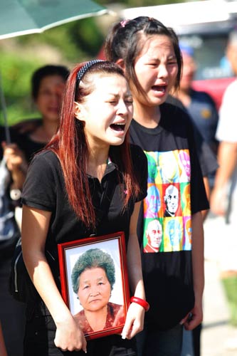 中新網(wǎng)8月15日電 莫拉克臺(tái)風(fēng)帶給臺(tái)灣嚴(yán)重災(zāi)情,高雄縣甲仙鄉(xiāng)小林村大批居民被土石流淹沒。甲仙鄉(xiāng)公所今天上午請(qǐng)千佛山協(xié)助為小林村9到18鄰遭淹埋的罹難村民,舉辦頭七法會(huì),現(xiàn)場(chǎng)擁進(jìn)千余名家屬,哭聲不斷,場(chǎng)面令人鼻酸。