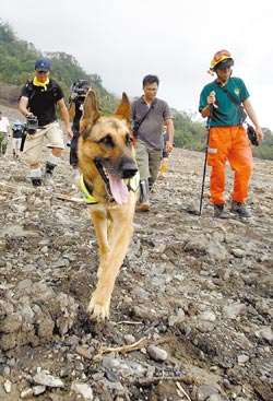 只是,豬尸與人尸氣味相仿,搜救犬訓(xùn)練方式就是要它們“找到死豬肉”。但新開部落土石流崩落,恐怕許多豬只也被埋入,是否會造成搜救犬誤判,袁明桂認為有可能。但搜救犬的投入絕對會讓查找工作更順利。