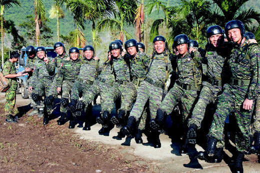 中新網(wǎng)8月25日電 據(jù)臺灣《聯(lián)合晚報》報道,救災(zāi)臺軍官兵傳出甲型流感疫情后,民間捐贈的防水透氣材質(zhì)特戰(zhàn)軍靴25日清晨起由直升機(jī)運(yùn)至第一線山區(qū)救災(zāi)部隊官兵手中,在馬英九巡視高雄縣那瑪夏鄉(xiāng)民族、民權(quán)、民生等村落前,執(zhí)行救災(zāi)任務(wù)的25名海軍陸戰(zhàn)隊官兵都趕忙換到新靴子。
