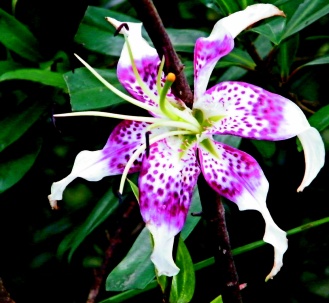 艷紅百合花如其名,在原生百合花中最艷麗動(dòng)人,反卷后翻的白底花瓣帶著紅色斑點(diǎn),花蕊往外伸出,遠(yuǎn)望不像臺(tái)灣原生百合花,是日本人最喜歡的鹿子百合變種,有“最美麗的東亞百合”之稱(chēng)。