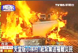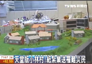 中新網(wǎng)9月4日電 臺(tái)灣“八八水災(zāi)”毀了高雄縣小林村,3日正逢中元節(jié),臺(tái)北縣有家專門(mén)制作“天堂配件”的紙?jiān),為讓死者安息,連夜趕工蓋出“天堂版小林村”,里頭除了住家、學(xué)校以及商店街,希望火化后,能讓不幸的罹難者,在天上有棲身之地。