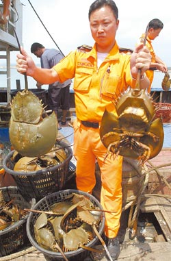 中新網(wǎng)9月18日電 據(jù)臺灣《中國時報》報道,來自福建龍海的“閩龍漁0266號”漁船昨天越界進入金門,濫捕120只已有繁殖能力的成鱟,驚動正進行人工培育的金門縣水試所,在標示紀錄后全部放流重返大海,11名落網(wǎng)漁民則被移送法辦。