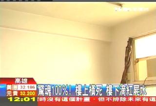 據(jù)臺灣TVBS電視臺報(bào)道,高雄縣一名女子這幾天發(fā)現(xiàn)墻角天花板流出暗紅色、有臭味的水。報(bào)警后,警方到公寓3樓開門,才發(fā)現(xiàn)在房間里有一具發(fā)黑浮腫的男尸倒臥床上,尸水滲出棉被流到地板再滲進(jìn)樓下房間,驚悚情景猶如恐怖電影情節(jié)。