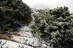 至于賞雪圣地合歡山,16日只在上午8時短暫下了夾雜雨水的雪,落地即融化。今天則在凌晨2時左右間歇性飄雪,武嶺至合歡山莊一帶山壁可以看到約1公分的積雪。