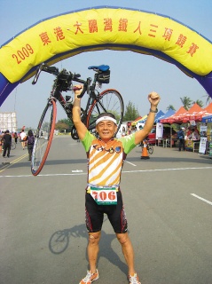 張炳榮昨天參加屏東東港大鵬灣51.5公里全臺鐵人三項競賽,先游泳1.5公里,再騎自由車40公里,最后跑10公里,3小時7分的成績完成比賽。超級鐵人三項協(xié)會被他的毅力和精神感動,昨天頒給他榮譽VIP獎。