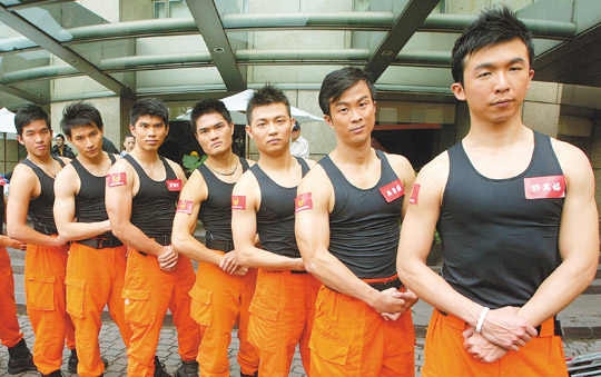 郝龍斌為了“捧場”,特別率領(lǐng)十位臺北市消防局的猛男消防員來捐血,郝龍斌開玩笑保證這些血“質(zhì)量有保證”。