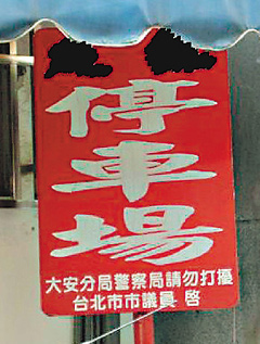 一家位于敦化南路、文昌街口的私設(shè)停車場,竟然還掛著“警察局請勿打擾 臺北市議員啟”的招牌,用來恐嚇取締。
