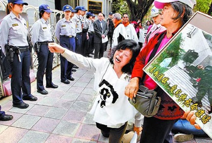 中新網(wǎng)3月25日電 據(jù)臺灣媒體報道,臺空軍一中士蔡學良于前年五月九日在靶場射擊時遭槍傷后不治身亡,被判定是自殺,蔡母尤瑞敏率親屬到空軍司令部前拉白布條抗議,痛批空軍“草菅人命、黑箱作業(yè)、毀滅證據(jù)”,蔡母倒地痛哭:“司令,我給你跪,拜托你給我們一個真相,不要再敷衍了!”隨后并向“監(jiān)委”趙昌平陳情,趙允諾調(diào)查,近期內(nèi)將約談相關(guān)人員。