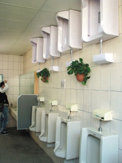 “咦! 小便斗、馬桶怎么倒置在墻上、天花板?”走進(jìn)臺灣醒吾技術(shù)學(xué)院的廁所,如果抬頭看,恐會一時反應(yīng)不過來,以為眼花了,天花板又是地板,地板是天花板,人仿佛變成倒立站在天花板上廁所了。