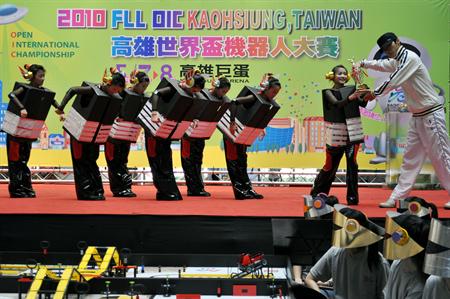 “2010FLL世界杯機(jī)器人大賽”是針對(duì)9到16歲的學(xué)子所規(guī)劃的國(guó)際性機(jī)器人競(jìng)賽活動(dòng),講求投入、分工、分享、創(chuàng)意與團(tuán)隊(duì),比賽分成“簡(jiǎn)報(bào)”與“機(jī)器人任務(wù)挑戰(zhàn)”兩大部份;此外,選手在比賽現(xiàn)場(chǎng)還要努力宣傳自己的隊(duì)伍,吸引民眾青睞,是一場(chǎng)結(jié)合智能與創(chuàng)意的比賽。