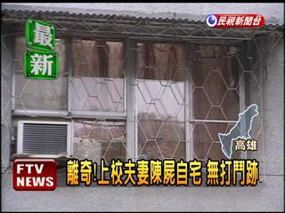 中新網(wǎng)4月19日電 據(jù)臺(tái)灣民視新聞報(bào)道,高雄縣鳳山工協(xié)新村18日驚傳一對(duì)夫婦陳尸住處的離奇命案,死者是60幾歲,上校退伍的曾清賢,與妻子雙雙陳尸在客廳跟臥房,警方說(shuō),由于現(xiàn)場(chǎng)沒有打斗的痕跡,門窗也沒有被破壞,將等檢察官進(jìn)一步驗(yàn)尸,確認(rèn)死因。
