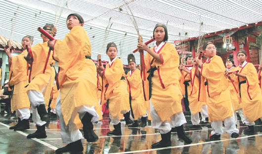 中新網(wǎng)9月28日電 據(jù)臺(tái)灣《聯(lián)合報(bào)》報(bào)道,南投縣各界紀(jì)念大成至圣先師孔子2559周年誕辰釋奠大典,27日上午在埔里鎮(zhèn)昭平宮育化堂孔廟舉行,特別的是,擔(dān)綱六佾舞“佾舞生”的育英小學(xué)首開縣內(nèi)先例,36名佾舞生中,小學(xué)六年級(jí)女生就占了19位。