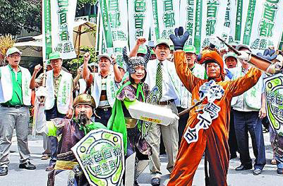 臺南市有300多名臺聯(lián)黨支持者欲北上嗆馬,卻因租不到游覽車,臺聯(lián)市議員參選人丘傭哲竟異想天開,昨與30名支持者分乘4艘舢舨,從曾文溪口闖關出海,打算循水路往北駛向淡水河。丘傭哲等人登船后,駛離不到100公尺,隨即被海巡人員攔下。(●環(huán)球時報報駐臺北特約記者 蕭師言 ●本報記者 吳 薇)