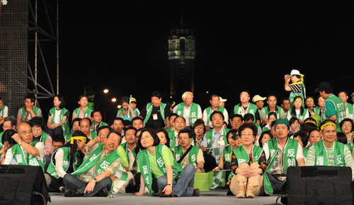 報道指,蔡英文18日晚10時20分左右離開活動現(xiàn)場,但手持“嗆馬嗆到520、不救陳水扁不離開”標語的群眾席地而坐,不愿散去。(周先)