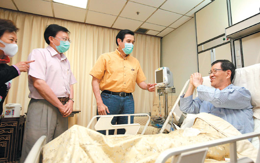 中新網(wǎng)5月25日電 據(jù)“中央社”報(bào)道,馬英九24日晚間偕同臺(tái)當(dāng)局“行政院長(zhǎng)”劉兆玄前往臺(tái)北榮民總醫(yī)院,探視進(jìn)行肺部腫瘤切除手術(shù)的蕭萬長(zhǎng),馬英九希望蕭萬長(zhǎng)安心靜養(yǎng),早日康復(fù)。